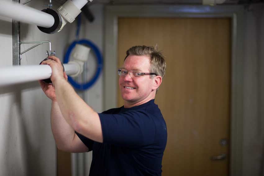 Med flera olika yrkesgrupper inom samma företag – träarbetare, rörmontörer, elektriker, platschefer, byggnadsarbetsledare med flera – har vi rätt kompetens för att genomföra smidiga stambyten. Vi vill göra mesta möjliga för att du som kvarboende ska känna dig trygg med hantverkare i huset. Därför bär alla våra anställda synlig legitimation. Det gör att vi bättre kan kontrollera att arbetet utförs på rätt sätt.